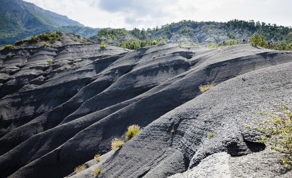 Le parcours débute en direction du Villard des Dourbes par la route, puis un chemin longe les Terres Noires jusqu’à la Bergerie Morel. Continuer jusqu'à la route du village de Draix et finir en direction de Digne-les-Bains, 60% du tracé est sur route.