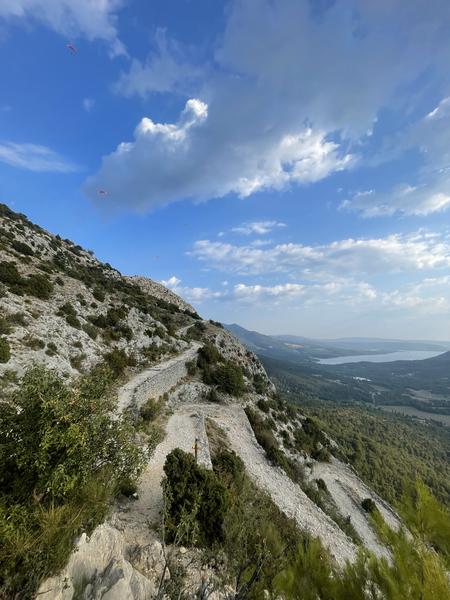Une courte et exigeante randonnée pour atteindre la chaîne de la légendaire étoile de Moustiers-Sainte-Marie. Attention, du fait de sa dangerosité, cet itinéraire est très vivement déconseillé aux jeunes enfants.