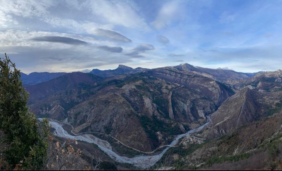 Cette randonnée mène au Belvédère d'Esclangon et au Col de l'Escuichière où se trouve un Refuge d'Art de l'artiste Andy Goldworthy. Le parcours débute dans la vallée du Bès et emprunte un sentier sinueux dans des terres argileuses jusqu'au col.
