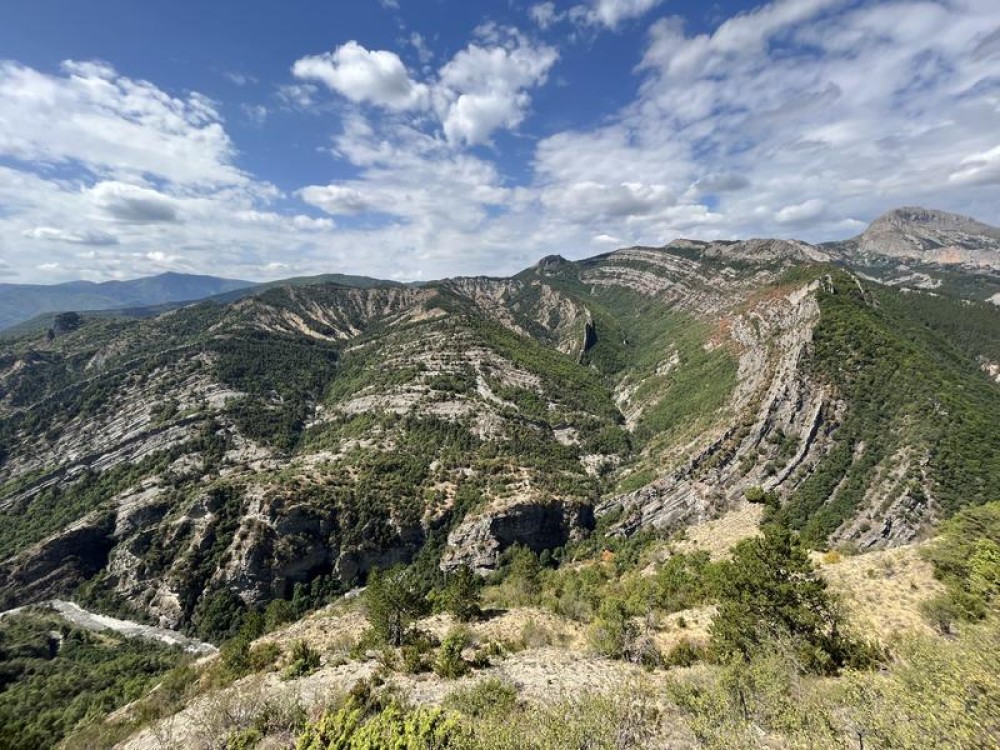 Programme du Jour 3 : Petit-déjeuner continental, récupération du pique-nique et remise des chambres pour un départ (horaire libre) vers la vallée du Bès (à 20 min de Digne, direction Barles D900) à proximité de la Clue du Pérouré. Journée de randonnée immersive en liberté (accompagnateur en supplément). Vous rejoindrez le hameau abandonné du Vieil Esclangon (2h30 – 5km – 350m) au pied de la Montagne du Blayeul. Vous passerez par le Refuge d’Art du Veil Esclangon et vous poursuivrez jusqu’au point de vue du Collet qui offre un panorama exceptionnel sur le vélodrome en rive droite du Bès, le retour s’effectuera par le même itinéraire. Pause pique-nique près de la passerelle du Bès, en bord de rivière. Puis départ pour la randonnée de la Lame de Facibelle (4h – 11 km – 550m). Vous monterez dans une belle forêt de hêtres, pour passer au pied de la spectaculaire lame de Facibelle, une curiosité géologique monumentale.